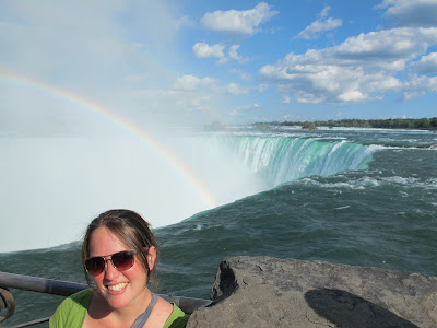 Après la petite déception de Toronto, nous nous sommes dirigés vers les chutes du Niagara pour sortir un peu des villes. Et là, ouaw!!! Hyper impressionant, les chutes ne sont pas très hautes mais elles sont très très larges. Nous avons testés pour vous le piège à touriste par exellence : le bateau qui s'approche au pied des chutes. Roulement de tambours svp. Cela consiste a s'équipper d'un horrible kway bleu pour monter sur le bateau, s'approcher des chutes, en prendre plein la figure et être plongé dans un parfait brouillard en espérant que le capitaine sait ce qu'il fait! Si vous voulez voir les chutes, regardez les d'en haut, la vue est bien meilleure. La ville s'est développée autour du tourisme et la rue principale a des airs de las vegas. Nous avons eu l'occasion de sortir avec les gens de l'auberge et nois avons pu découvrir les boites de niagara falls avec leurs thèmes et concours très ... comment dire ... "spéciaux".