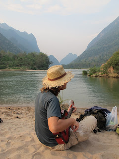 Petit bémol à notre arrivée au Laos avec la troupe : le "Slow Boat" sur le Mékong. Le Slow Boat, c'est un voyage de deux jours sur une des plus belles rivières du monde, entre la frontière et la ville de Luang Prabang. Jusque là tout va bien. Ce qui est moins cool c'est quand on se rend compte que le bateau en question ne contient presque que des touristes, et qu'on ne découvrira donc rien du côté authentique du pays pendant les deux jours... Les quelques laotiens qui se trouvent dans l'embarcation sont assis à l'arrière, près du moteur. Le bruit de celui-ci est tellement fort qu'ils ne savent même pas se parler. Ils se contentent donc d'assister au triste spectacle qu'offrent les touristes agités et bruyants (et pour certains soûls), et ce pendant deux longues journées.